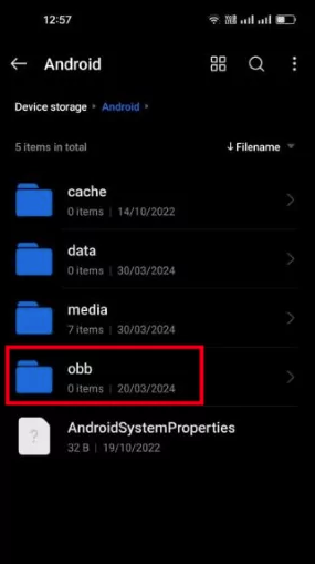 注意:如果有 OBB 文件:考虑如何在 Android 上安装 XAPK 文件时要注意的关键步骤是将 OBB 文件移动到正确的位置。提取时,您可能会看到三个文件。复制“OBB”文件并导航到“内部存储”选项卡。找到“Android”文件夹并将其粘贴到 OBB 文件夹中。